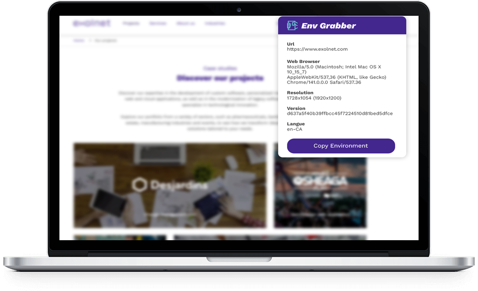 Env Grabber automatically centralizes key browser environment information and formats it in a clear, structured way. With a single click, you get complete, share-ready context, eliminating repeated requests for missing details.